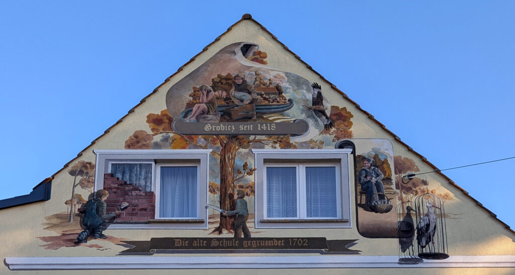 Das Wandbild von Gröbitz erzählt von Licht und Schatten im dörflichen Leben vergangener Zeiten. Es erinnert an das Schicksal der jungen Marie Deutschmannin, deren Lebensweg ein Beispiel für die harte Wirklichkeit vieler Frauen früherer Jahrhunderte ist – von Abhängigkeit, Ungerechtigkeit und gesellschaftlicher Verurteilung.